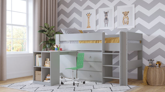 Kudl Storage Mid Sleeper with Desk and Cupboard, White