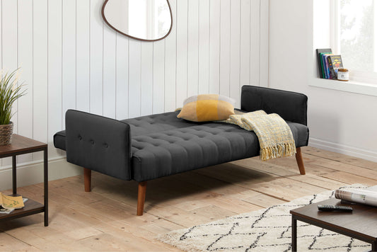 Hudson Sofa Bed – Charcoal Upholstery with Buttoned Detailing