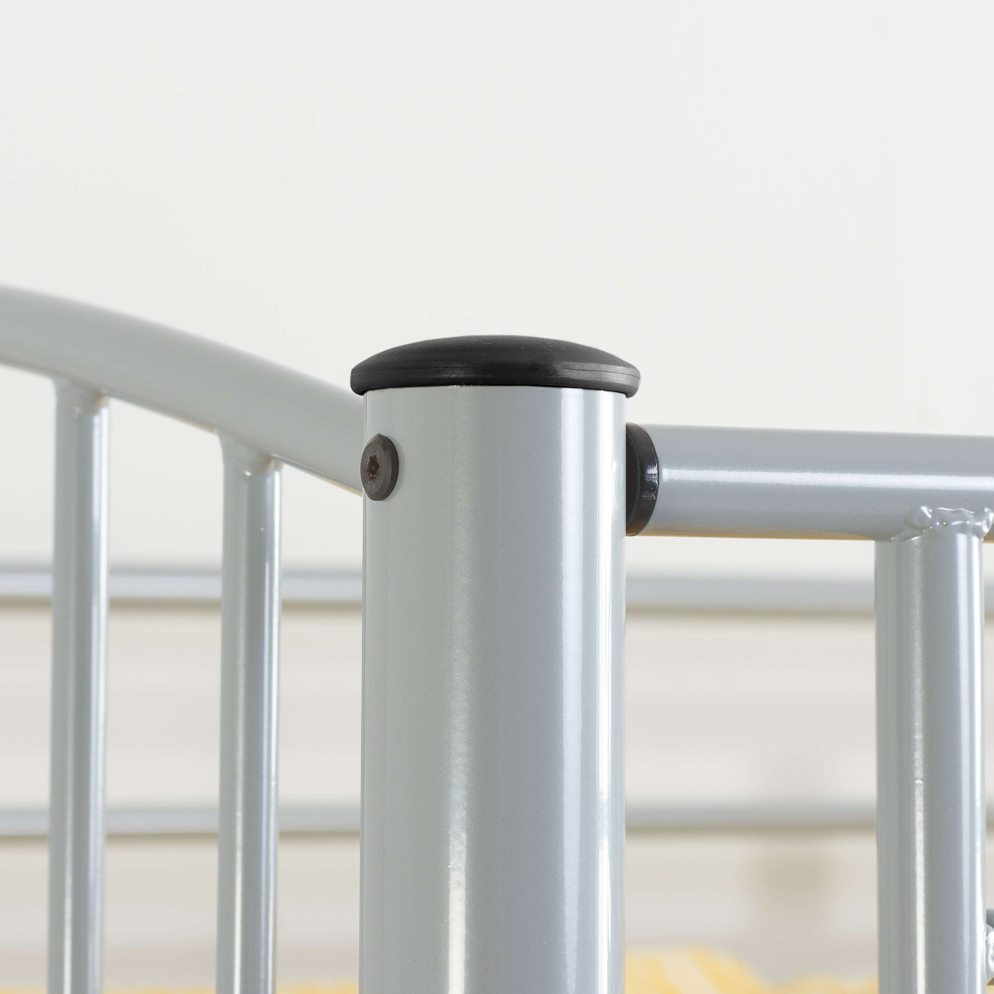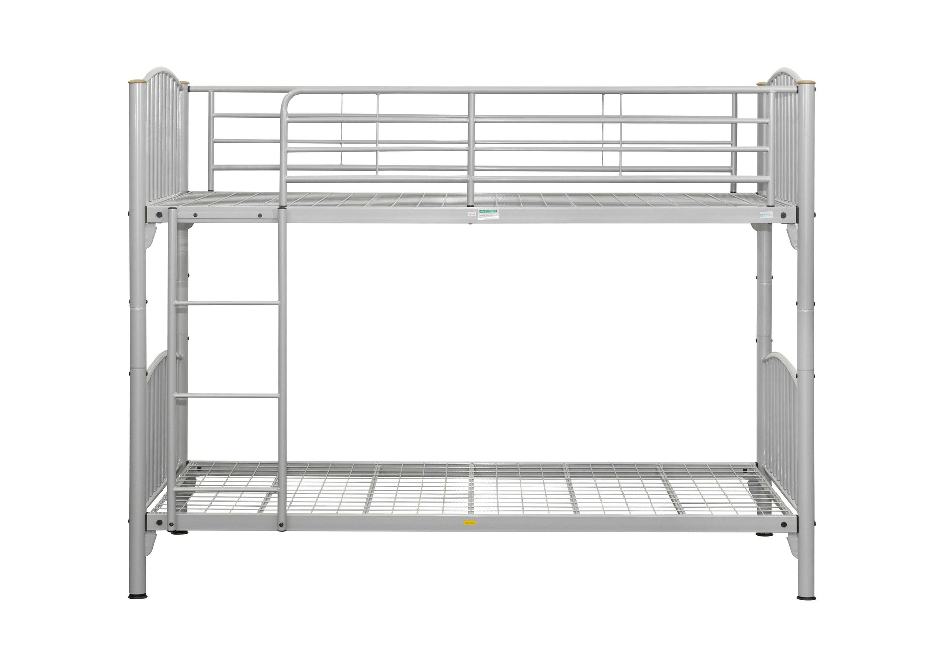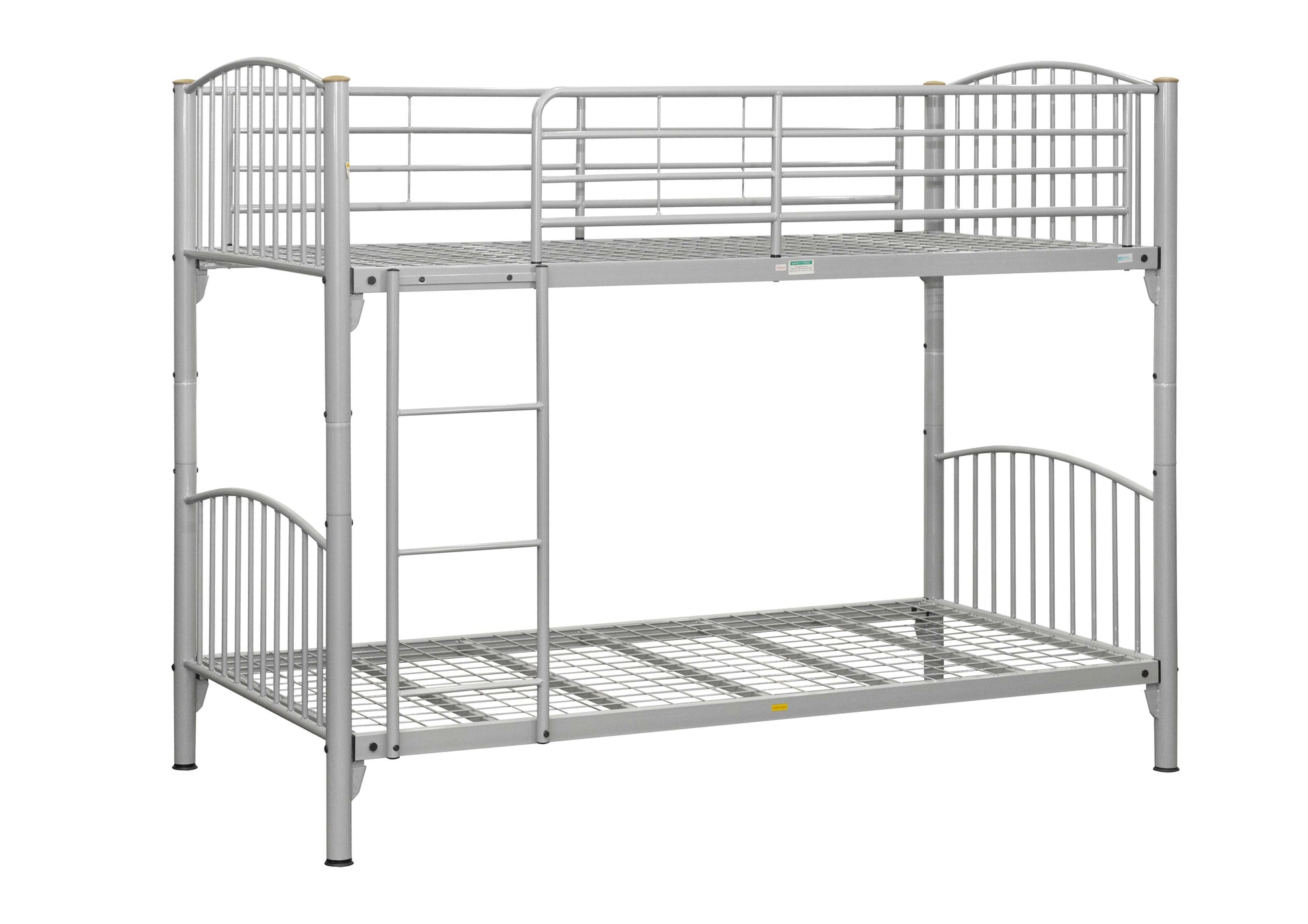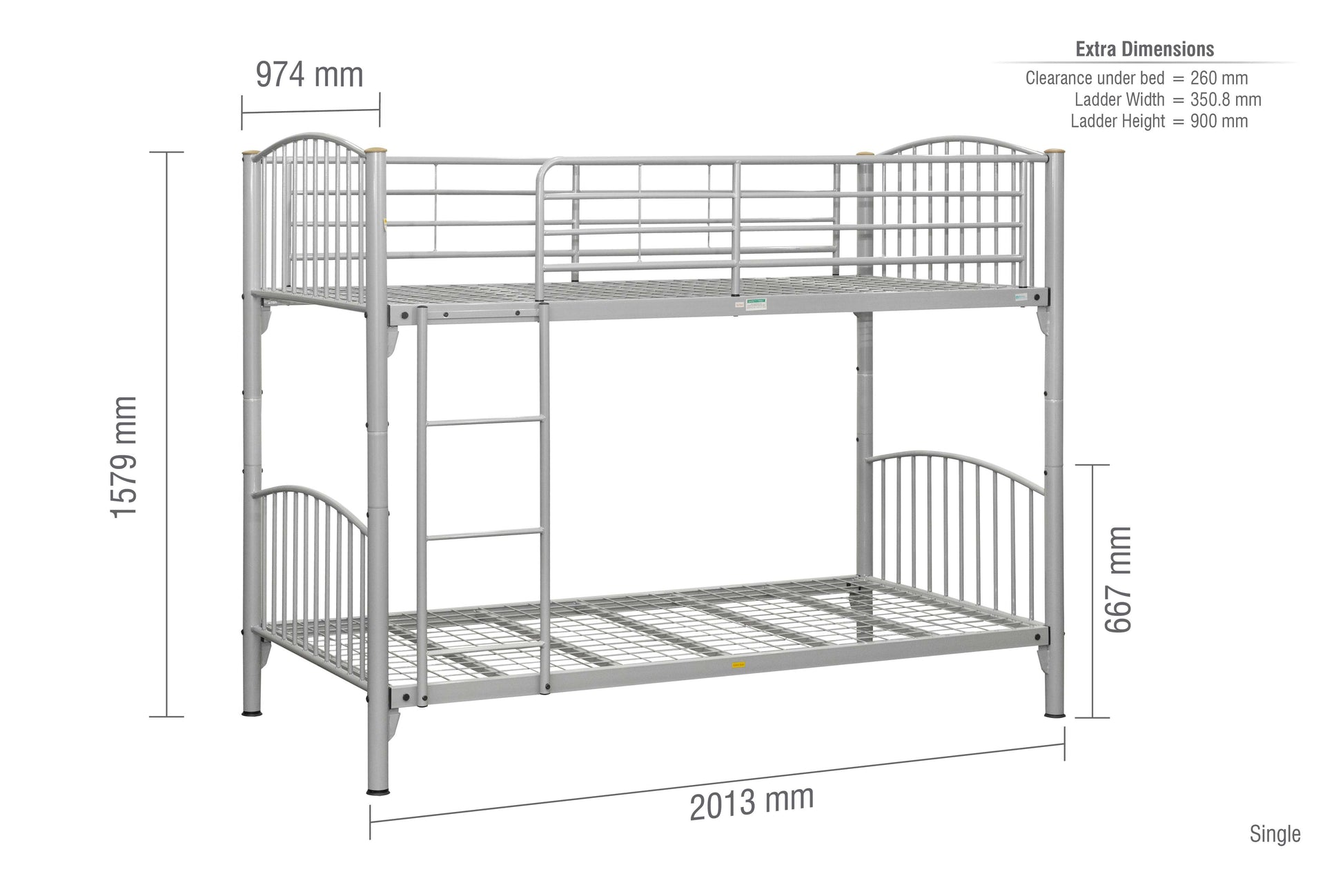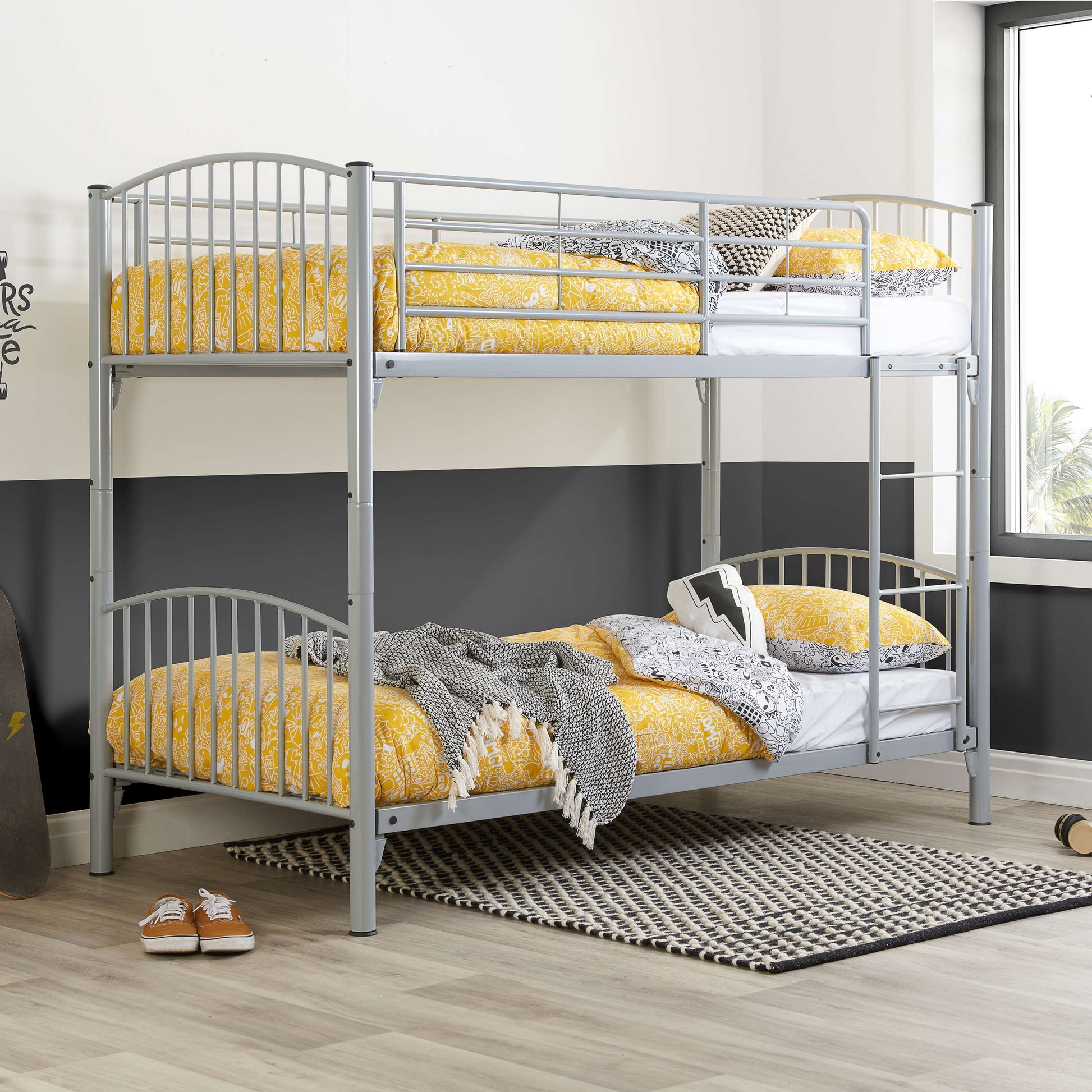 Multi functional and ultra-secure, the Corfu bunk bed neatly separates into two single beds, and looks great with its slick metallic finish. With an epoxy powder coated paint finish and beech coloured rubberwood post caps, this frame is available in silver.