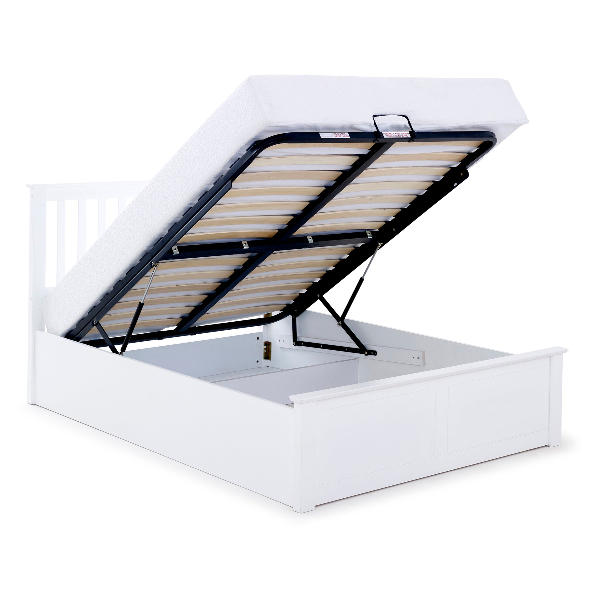 Francis Single Ottoman Bed – White Wooden Frame with Side-Opening Storage
