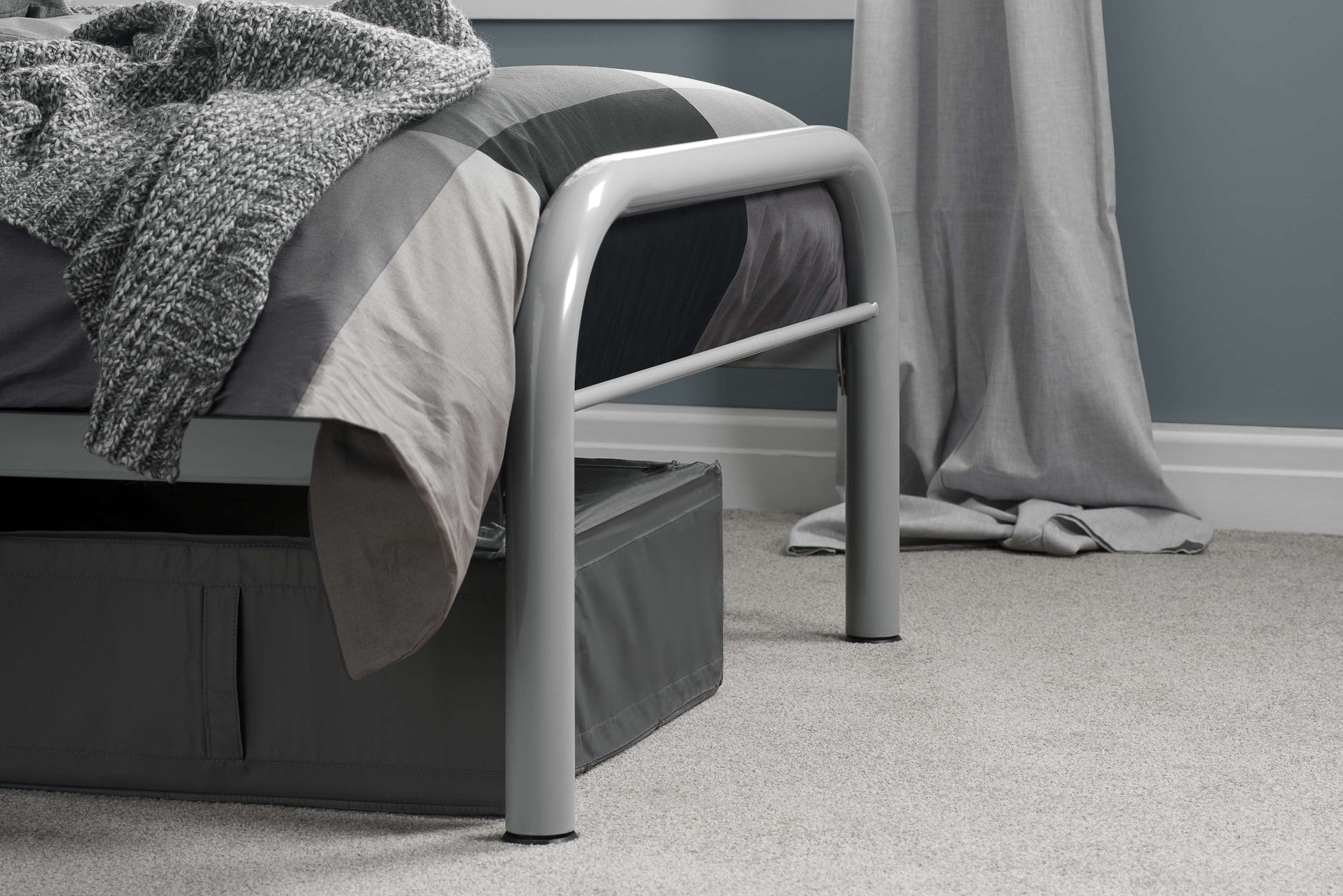 Francis Single Ottoman Bed – White Wooden Frame with Side-Opening Storage (grey)